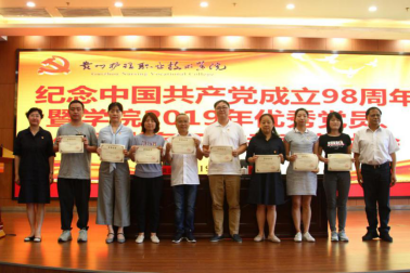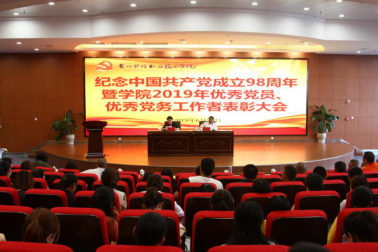 6月26日下午,我院庆祝中国共产党成立98周年纪念大会暨2018-2019年度院级优秀共产党员、优秀党务工作者表彰大会在学术交流中心隆重举行。学院党委书记黄亚励,党委副书记、院长李俊华及全体党员参加大会。
