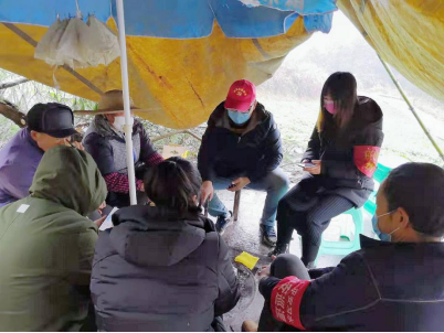 何平同学正在对村民进行防控意识宣传