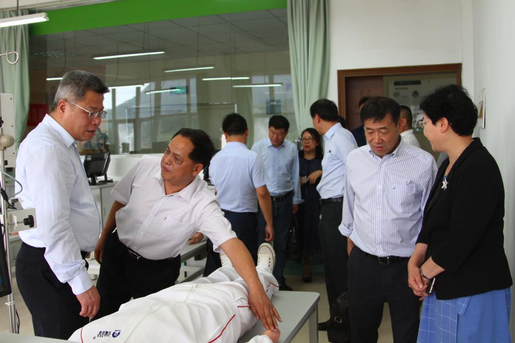 王世杰副省长首先调研了我院康养人才培养的实训设施,先后参观了我院人体生命科学馆、康复实训中心、急救/外科实训中心、妇产/儿科实训中心、基础护理实训中心及道德讲堂。