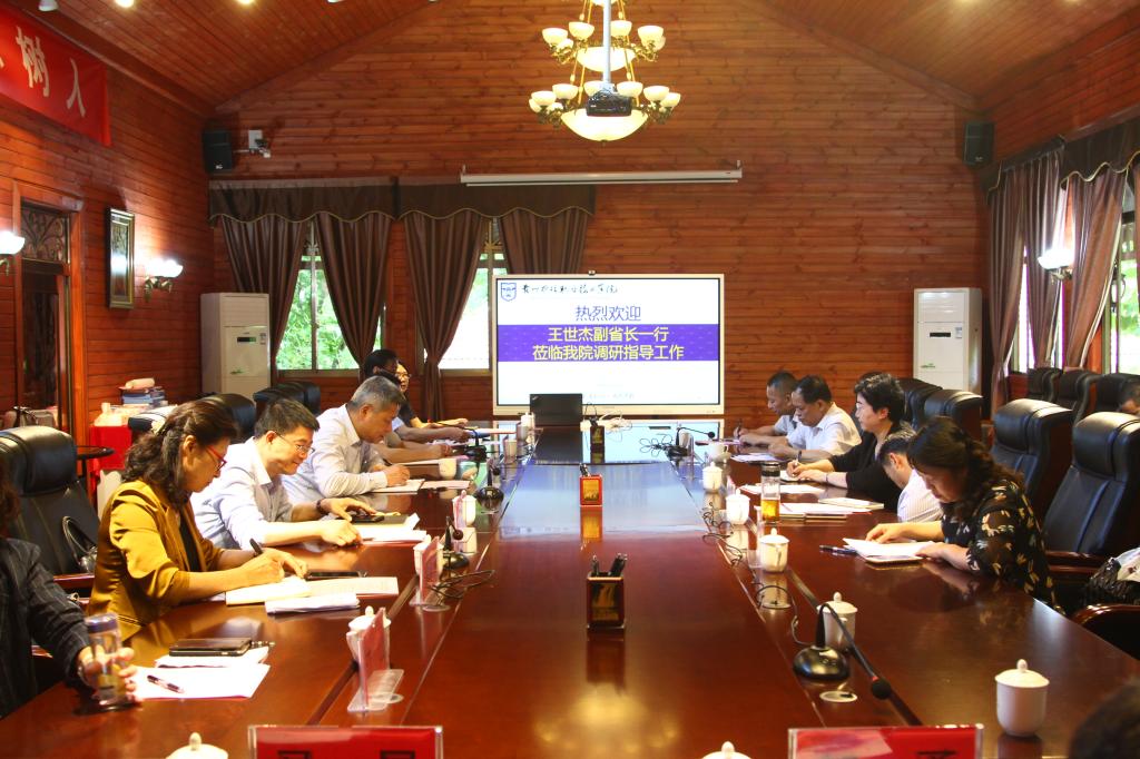 6月12日下午,贵州省人民政府王世杰副省长带领省人民政府副秘书长吕劲松、省教育厅副厅级督学何秀黔、省民政厅副厅长杨亚军、省卫生健康委副巡视员金海燕、省人民政府办公厅秘书四处处长江山、省民政厅养老专班负责人一行莅临我院就全省康养人才培养情况进行了调研和指导,我省部分开展康养人才培养的院校负责人也参与了此次调研。我院就全省康养人才培养情况进行调研。我院党委书记黄亚励,党委副书记、院长李俊华陪同参观并参加调研座谈。