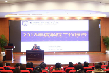 2019年的工作中,学院将继续学习和建设现代高校制度,继续依法自主办学,实行科学管理;推进各部门投身学院建设,加强制度建设、深化改革,扩大学院与社会的合作,学习先进的运行管理模式;办出专业特色,加强产教融合、产学研结合、完善和改革学院内部治理体系,为学院搬迁工作做准备;要继续争取上级部门及省内外相关院校、医院的大力支持和帮助,全力做好学院的各项行政、教育、教学、管理工作,确保学院平稳、持续地发展;继续以学生为中心,将专业建设与人才培养紧贴全省职业教育和全省健康卫生事业的发展需要,培养理想信念坚定、德智体美劳全面发展的高素质技术技能人才;进一步提高认识,增强工作责任感和紧迫感,以开局就是决战、起步就是冲刺的决心和态势,坚决打赢教育脱贫攻坚战;将带领全院教职员工主动融入我国高等职业教育改革发展的洪流,服务我省大健康产业发展的需要,为办人民满意的高等职业教育而努力奋斗!