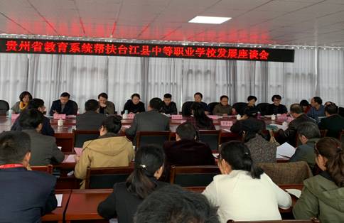 座谈会上,省教育厅职成教处副处长孙永红同志传达了关于帮扶台江县中等职业学校高效发展的指示精神,明确了各帮扶单位责任,希望各帮扶单位在专业建设、师资队伍建设、政策保障等方面给予台江职校全力支持。在对口帮扶结对子任务分配中,明确了由贵州护理职业技术学院、黔东南民族职业技术学院帮扶该校建设护理专业,要求对该校护理专业的专业规划、教学管理、教学设计、课程设置、师资队伍建设、实训实习、教材开发、教学设备等专业建设进行调研并形成具体帮扶方案。