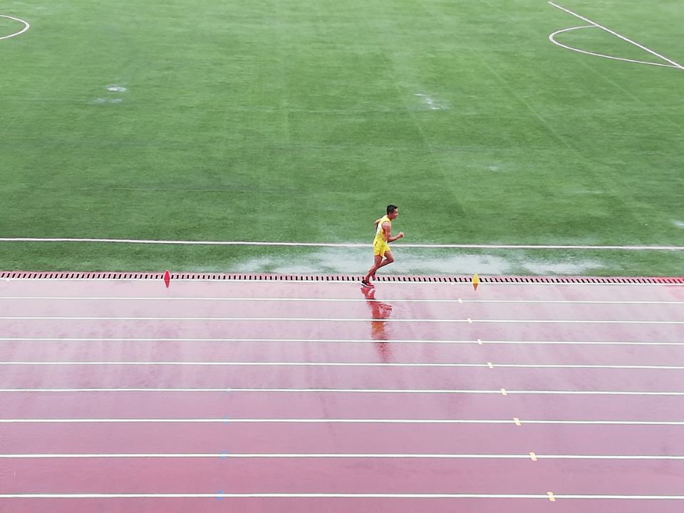 “加油”,“坚持”,“保持节奏”……看台上呐喊鼓劲的呼声此起彼伏,在湿滑的赛场,运动健儿顶着瓢泼大雨,克服低温和身体的极限,在这红色跑道上,用奋力拼搏燃烧激情,释放青春。首次出征的年轻小将们,今天无谓输赢,不谈荣辱,今天,你们就是自己的英雄!