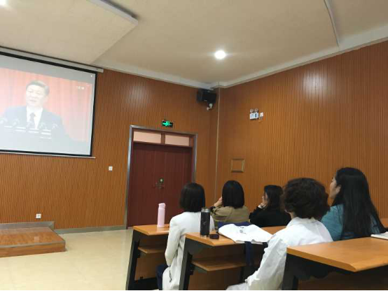 学校部分教职工正在观看十九大开幕式