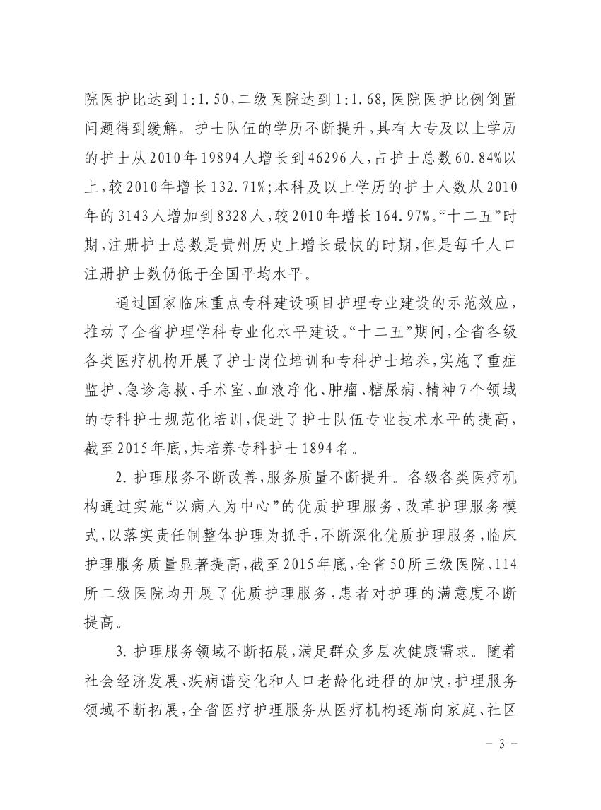 省卫生计生委关于印发《贵州省护理事业发展规划(2016-2020年)》的通知