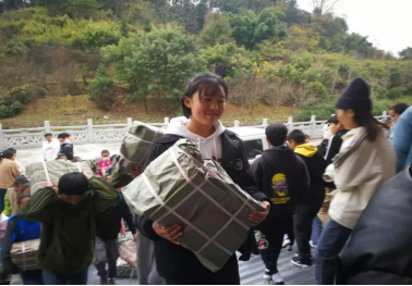 西藏班同学满怀喜悦地搬运受捐图书