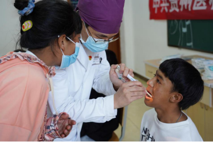 随后,贵州医科大学口腔医学院、附属口腔医院党委书记、教授张军梅为西藏班学生举行了一场主题为《口腔健康,一生随行》的口腔保健知识讲座,向同学们普及了口腔基本知识、常见口腔疾病类型和预防措施。讲座结束后,贵州医科大学口腔医学院综合急诊科主任、副主任医师刘洪静,口腔医学院主治医师帅宾宾、办公室主任张娜向同学们介绍了巴氏刷牙法,并为全体学生进行了口腔义诊,逐一对他们进行口腔检查,告诉同学们存在的口腔问题和治疗建议,还赠予了一些常见的口腔保健和治疗用品。此次互动有效增强了西藏班同学爱牙护牙的意识,也提高了他们的口腔保健水平。