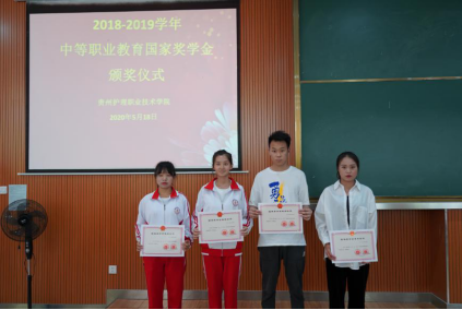 此次颁奖仪式对学院中职2017级校本部4名获奖学生颁发了荣誉证书,获奖学生分别发表了获奖感言, 获奖同学表示,非常荣幸获得中职国家奖学金奖项,这带给他们的不仅仅是物质上的奖励,更是精神上的极大鼓舞,感恩党和国家对中职学生的关心和鼓励,感谢学院教师及资助中心积极申报和帮助才有此次获奖机会,希望以后能继续努力学习,以自己所学一技之长回馈社会,报效祖国。