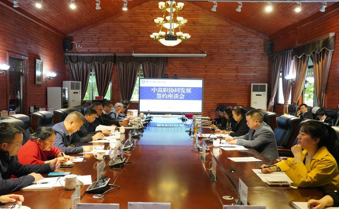 最后,受我院党委副书记、院长江智霞委托,潘忠伦代表学院分别与各中职学校主要负责人签署了《中高职协同发展战略合作框架协议》,双方与会代表共同见证了签约仪式。