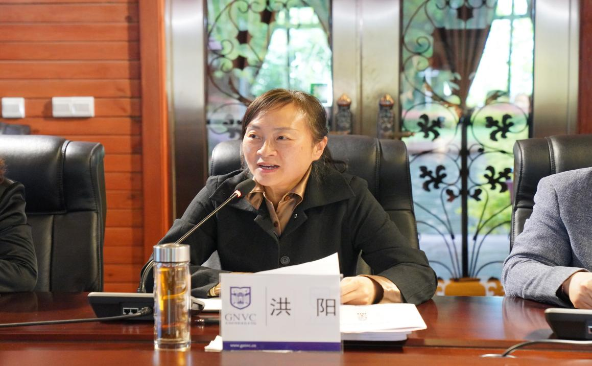 洪阳致欢迎词,她首先对各中职学校主要领导及部门负责人不辞辛劳齐聚我院共商中高职协同发展大计表示热烈的欢迎,随后简要介绍了我院的历史沿革、开设专业及招生就业情况等,希望双方密切协作,共同践行“美的教育”,推动协议各项工作落实落细,取得实效,为“人人职教、个个就业、家家致富”作出新的积极贡献。