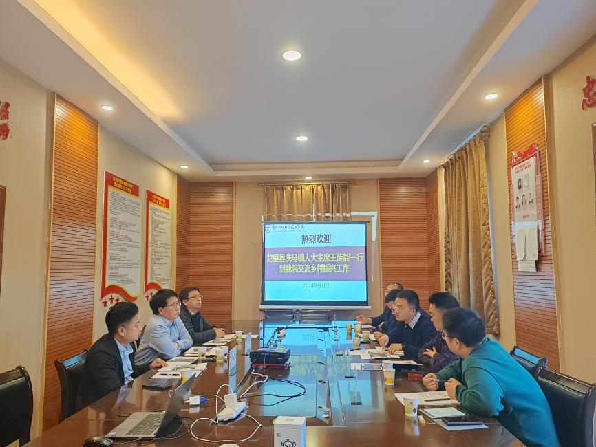 3月11日,龙里县洗马镇人大主席王传能一行前来我院交流乡村振兴工作。双方在学院行政楼党员活动室召开了座谈会,学院党委副书记、乡村振兴办公室主任吴忠红出席会议,组织部部长邓书银、后勤处处长朱青松及乡村振兴办相关工作人员参加会议。