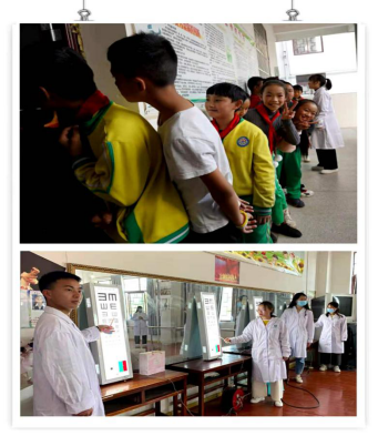 我院教师们为盘江小学的高年级学生做了视力及色盲检查,并建立相关档案,并指导学生们如何正确用眼,防止视力下降,将视力检查结果较下降的同学们筛查出来,分诊到电脑验光和裂隙灯显微镜下,进行下一步更精细的检查。