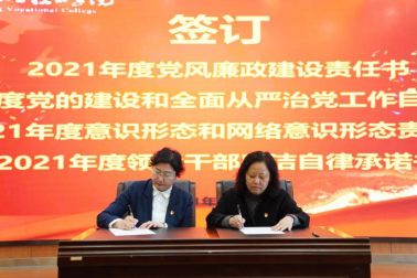 会上,党委书记黄亚励同志与学院领导班子成员签订了2021年全面从严治党工作责任书,与各党支部书记签订了2021年度党的建设暨全面从严治党工作目标责任书,与各部门负责人签订了2021年意识形态和网络意识形态工作责任书。会上还签订了领导干部廉洁自律承诺书。