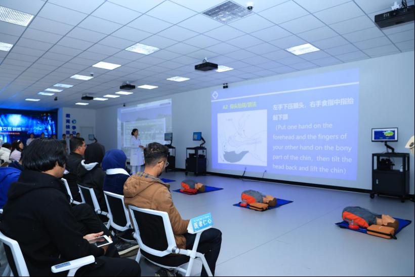 随后,马来西亚师生前往我院急危重症虚拟仿真产教融合实训基地和人体生命科学馆进行参观学习。在急危重症虚拟仿真实训基地,他们学习急救科普知识、操作急救虚拟仿真软件、练习急救技能;在人体生命科学馆,他们了解了人体结构,探索人体奥妙,使其感悟“人体之美美不胜收,人体奥妙奥妙无穷”。