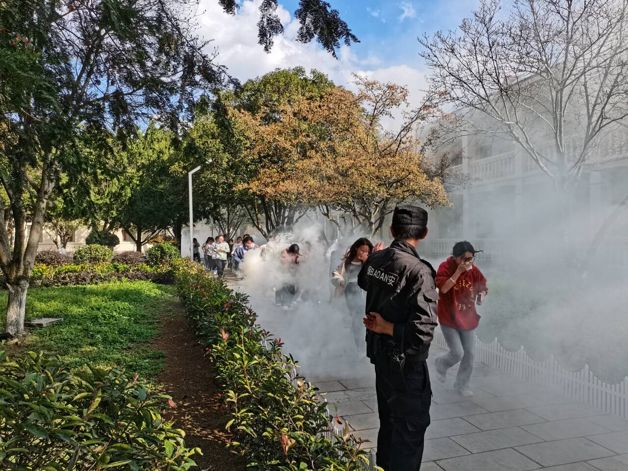 9日15时40分,演练开始信号发出。学生们在老师的组织下有序撤离火灾现场,到达安全位置,相关人员对学生人数进行清点并上报现场总指挥。整个演练过程操作安全,撤离迅速,现场有序。