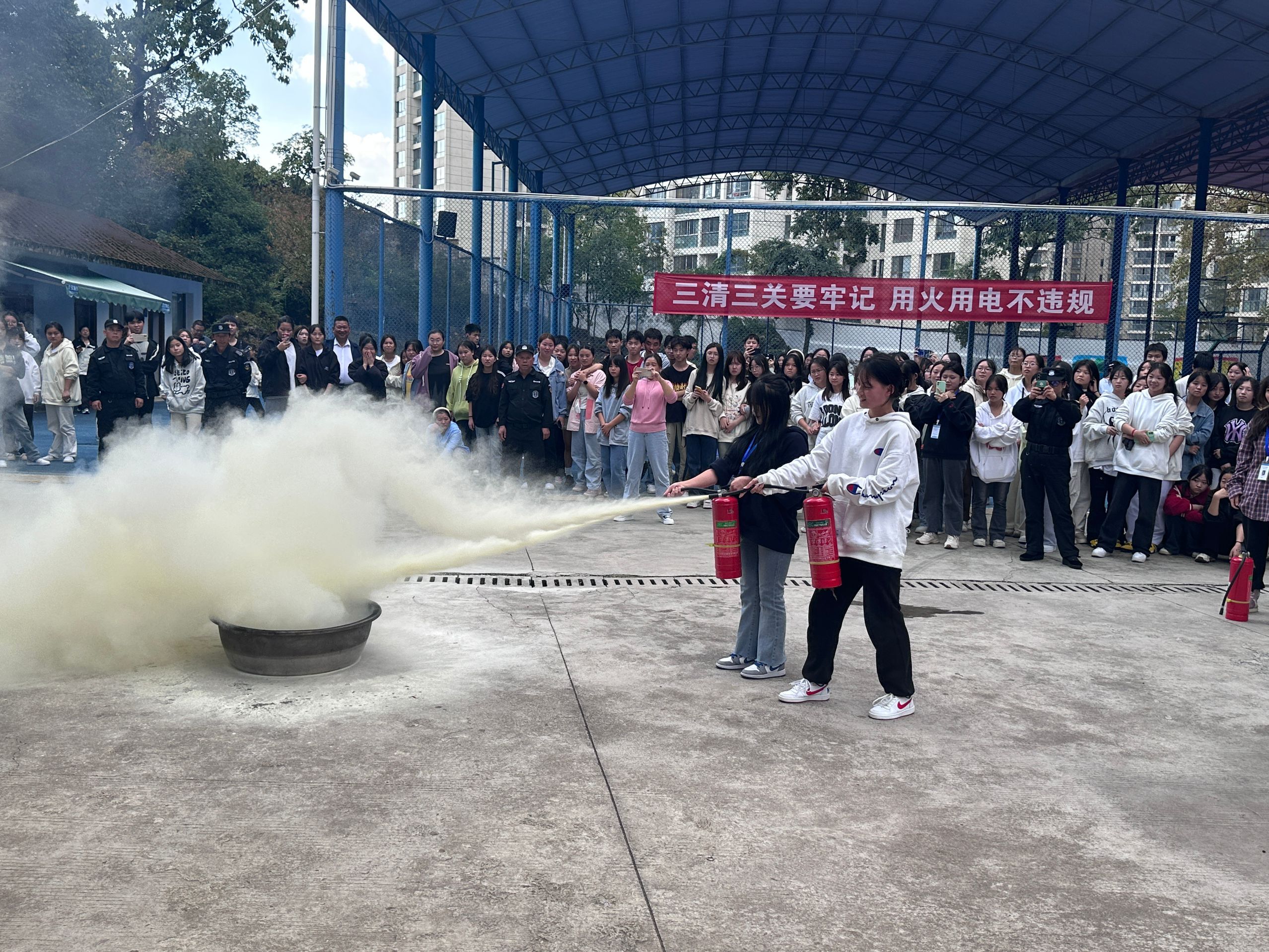 学生实操使用灭火器