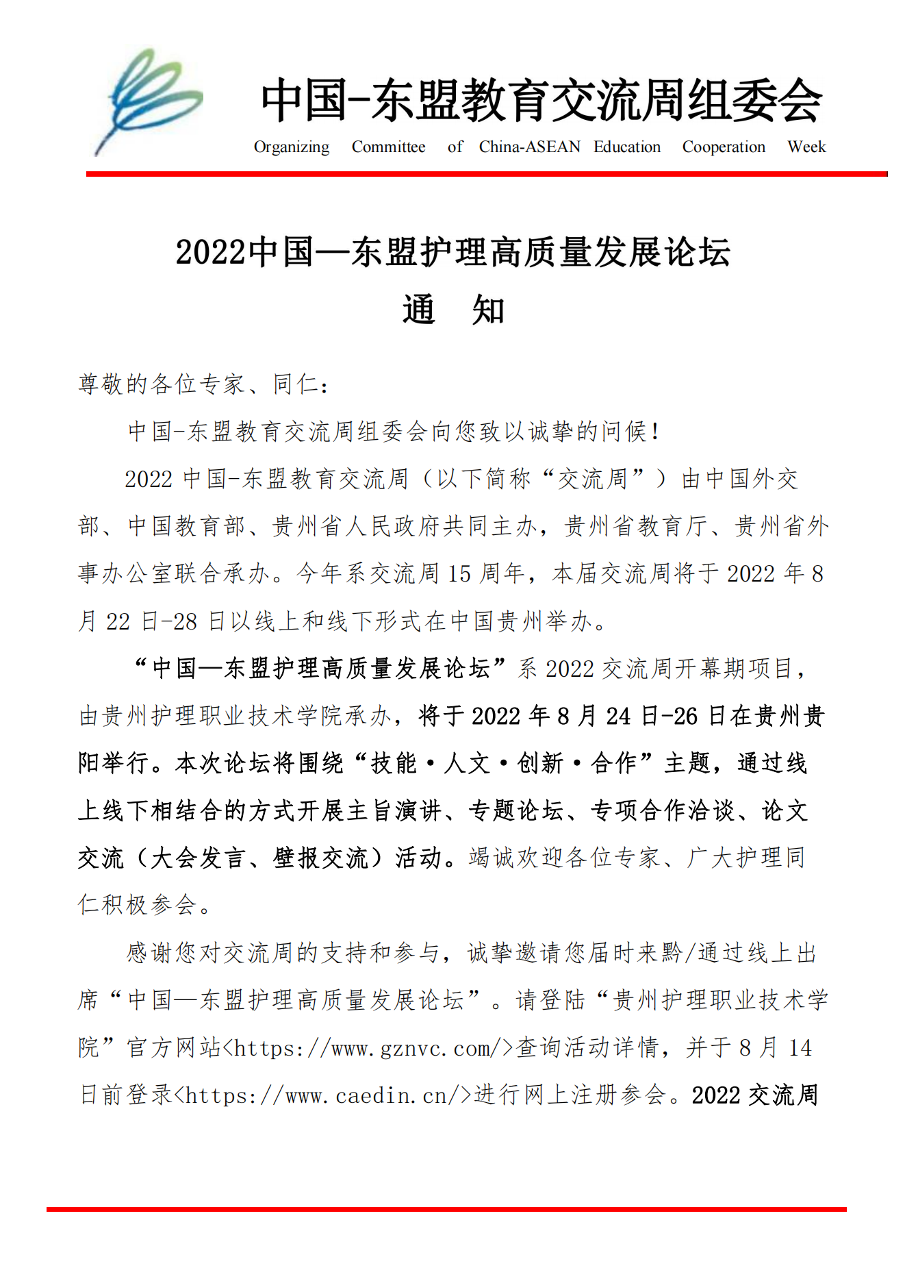 2022中国-东盟护理高质量发展论坛会议通知