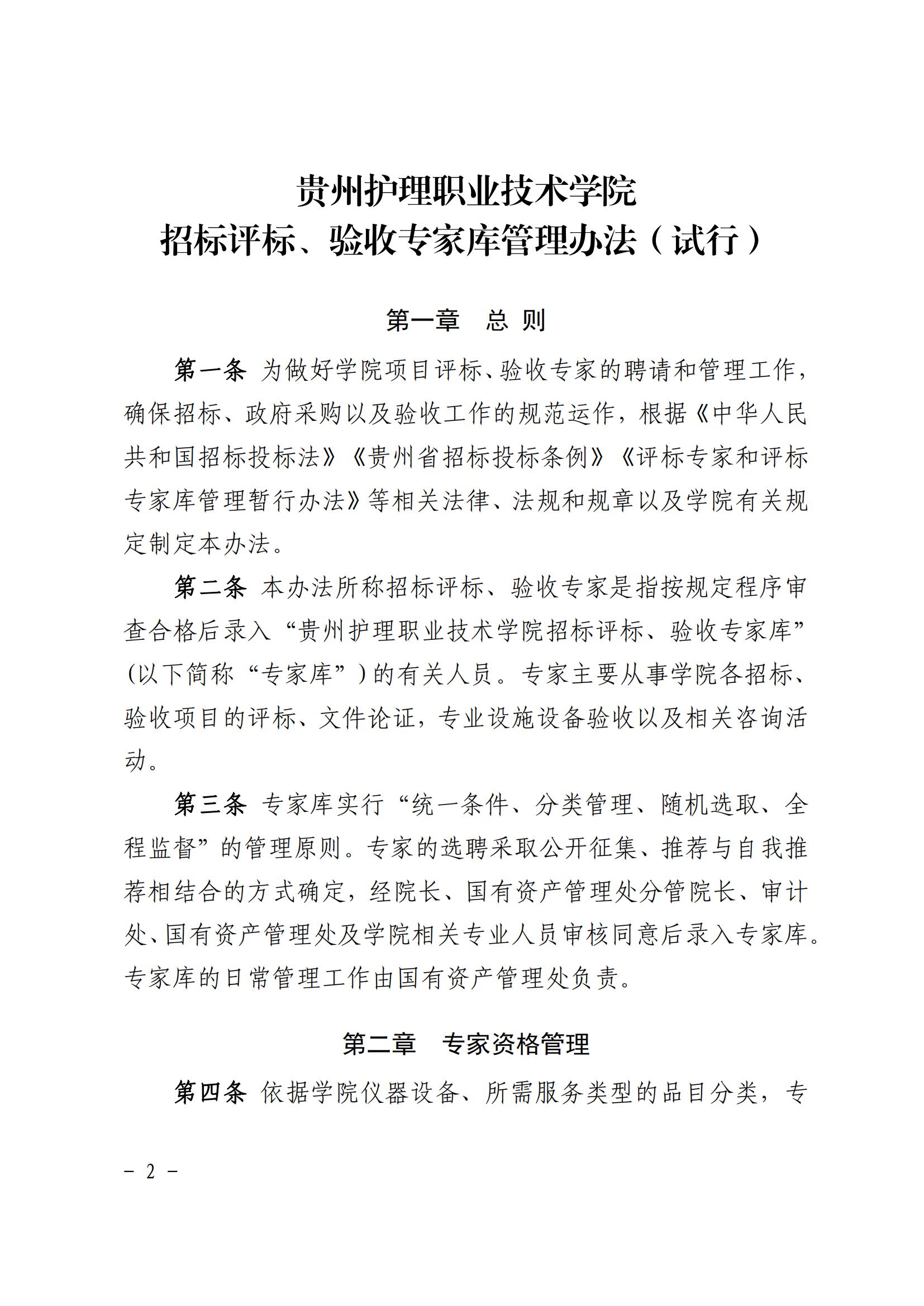 贵州护理职业技术学院招标评标、项目验收专家库管理办法(试行)