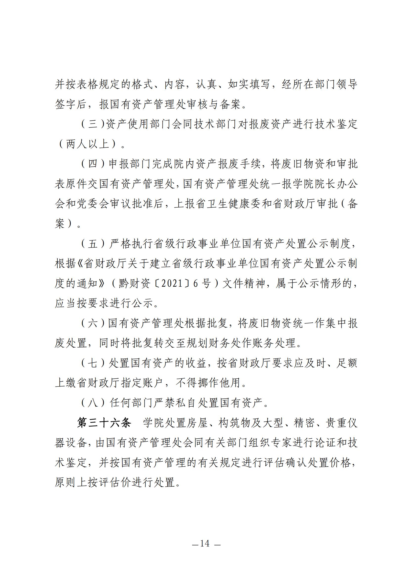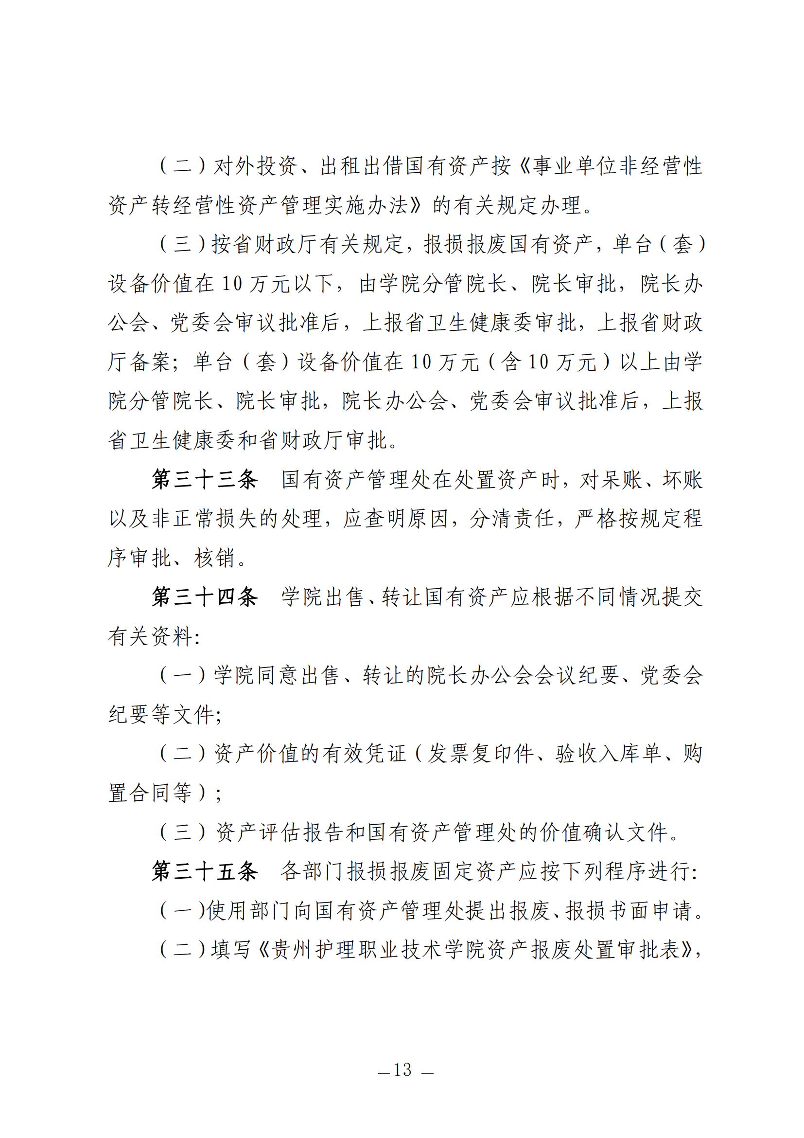 贵州护理职业技术学院固定资产管理细则(试行)