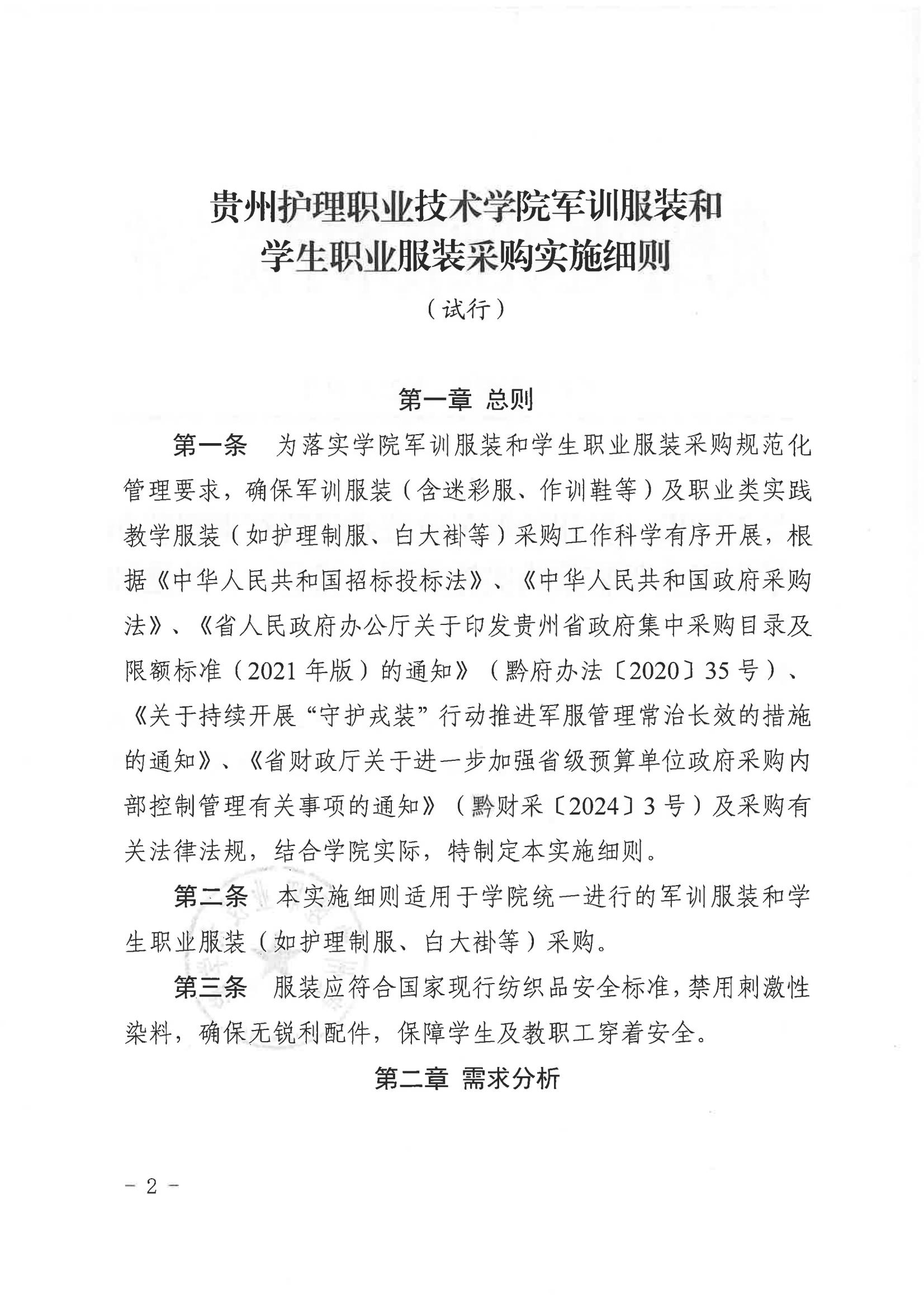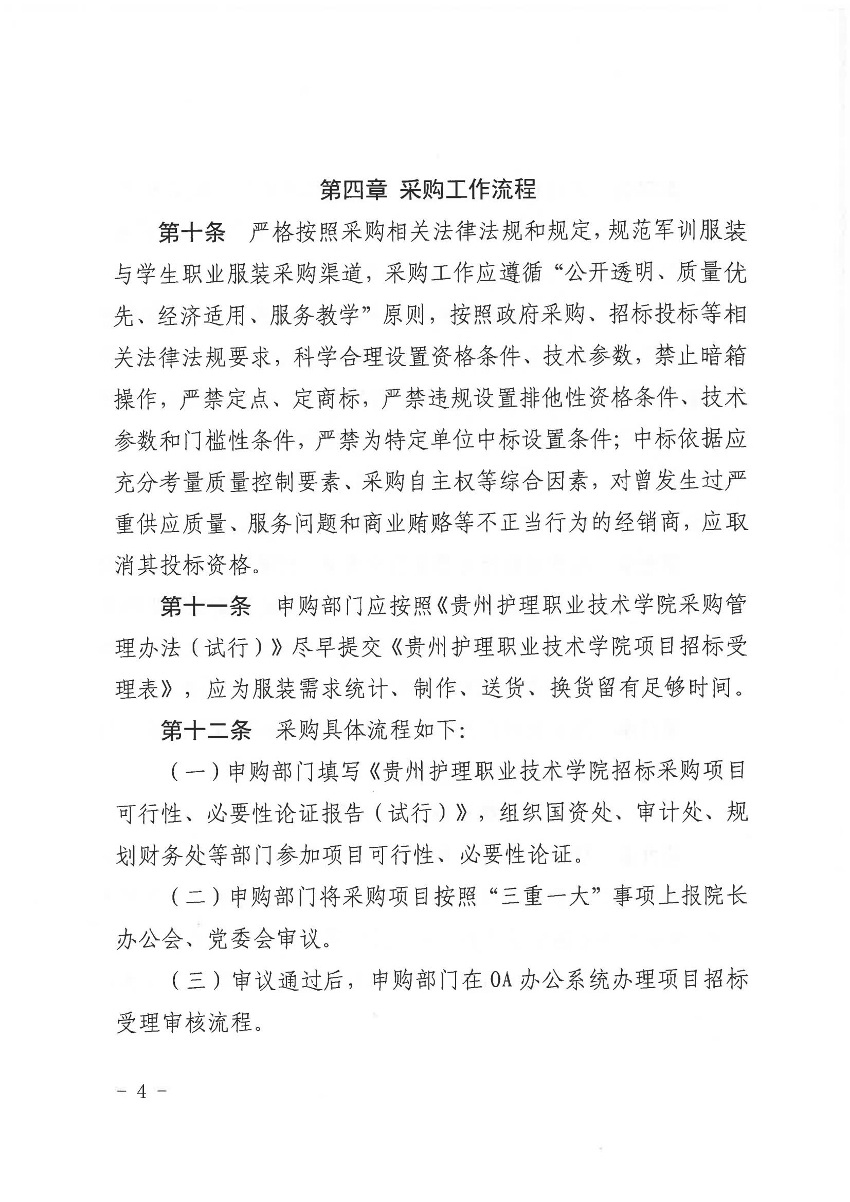 关于印发《贵州护理职业技术学院军训服装和学生职业服装采购实施细则(试行)》的通知